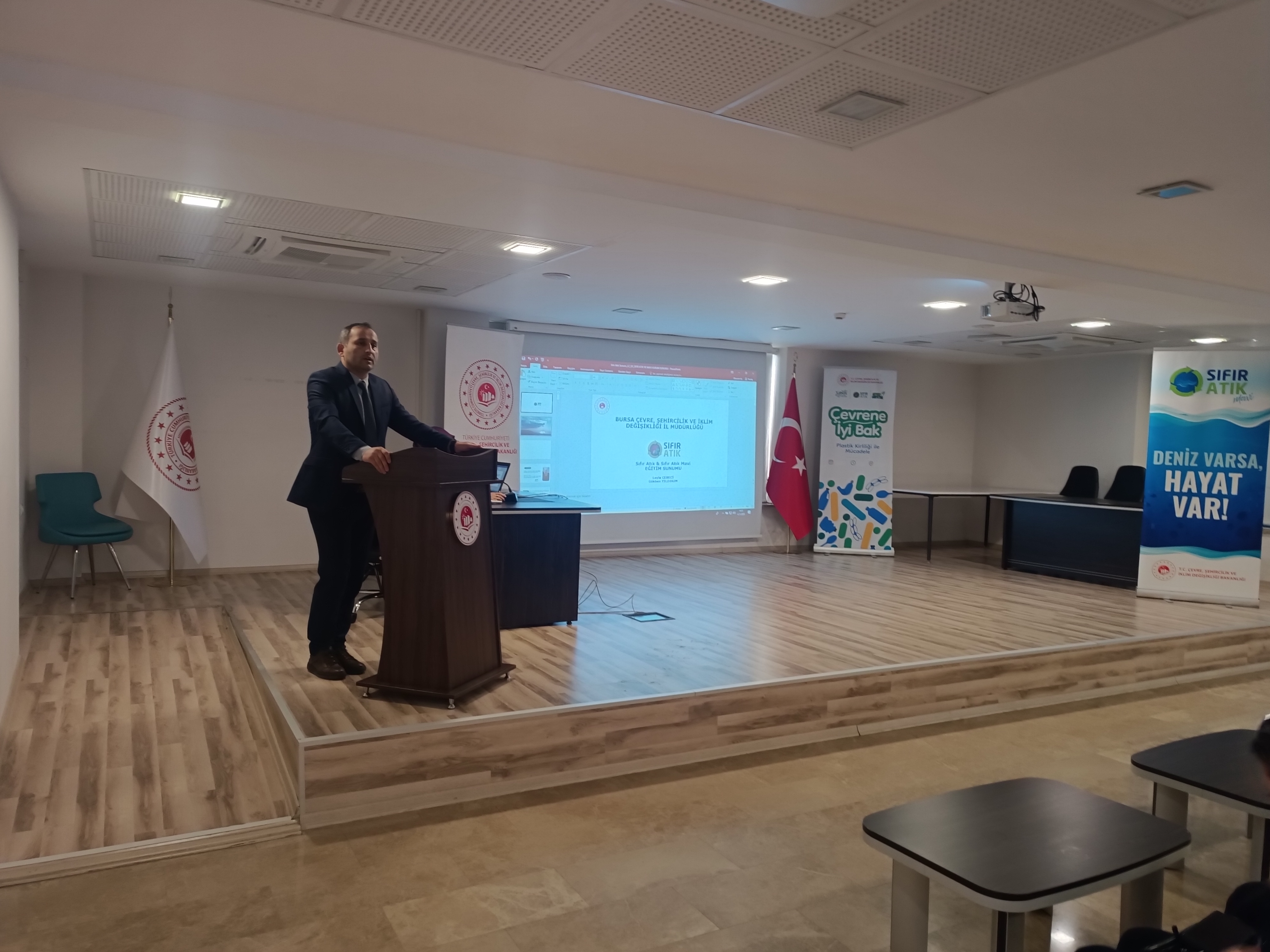 4 Kasım 2025 tarihinde İl Müdürlüğü toplantı salonunda düzenlenen programda, Bursa ili genelinde görev yapan kamu kurum ve kuruluşları, belediyeler, organize sanayi bölgesi müdürlükleri ile zincir marketlerin sıfır atık sorumlularından oluşan 177 kişiye yönelik “Sıfır Atık & Sıfır Atık Mavi” eğitimi verildi.